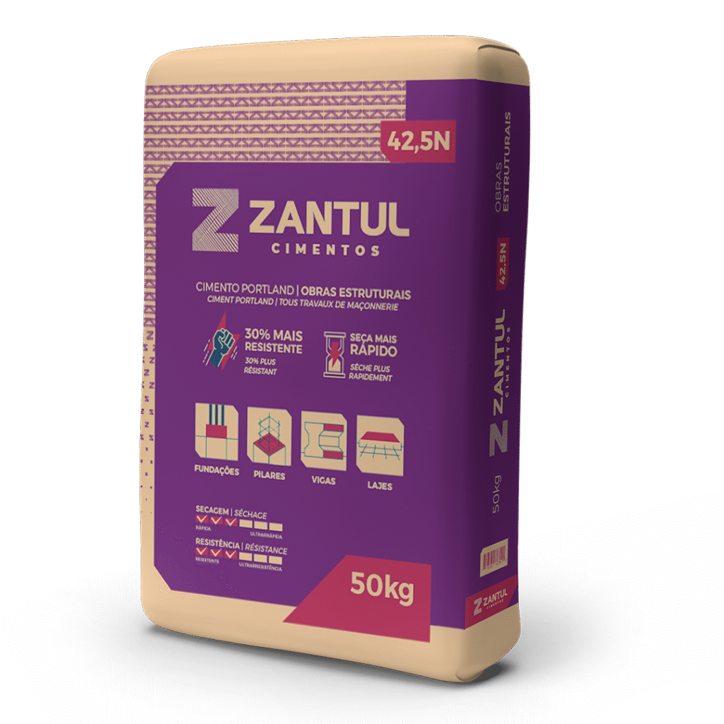 Com resistência de ≥10 MPa aos 2 dias e ≥42,5 MPa aos 28 dias, o Cimento 42,5N Zantul.